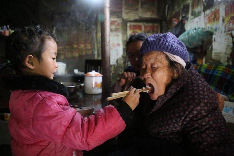 5 yaşındaki Çinli kız hem anneannesine hem büyükannesine bakıyor