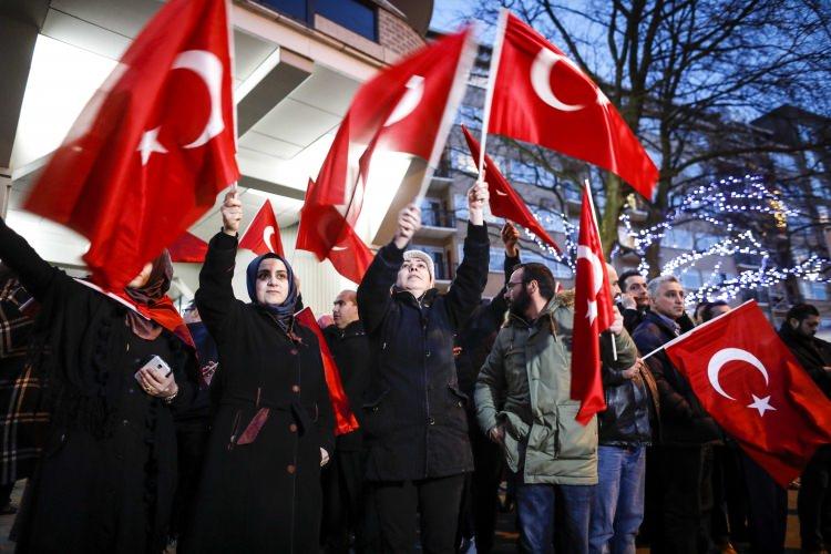 Beyoğlu İstiklal Caddesi'nde bulunan Hollanda'nın İstanbul Başkonsolosluğu önüne ellerinde Türk bayrakları ile gelen vatandaşlar, Hollanda aleyhinde slogan attı.
