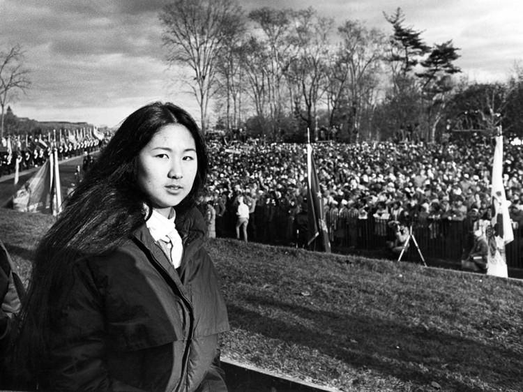 13 Kasım 1982'den bu resimde, sadece 23 yaşında olan Maya Lin, Vietnam Anıtının ithafı sırasında duruyor. Lin, savaş anıtını tasarlamak için halka açık bir yarışmayı kazandığında 21 yaşında bir lisans öğrencisiydi.