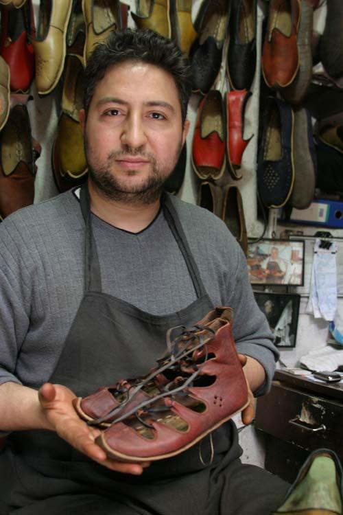 Kapalı çarşıda çarık imalatı yapan bir iş yeri