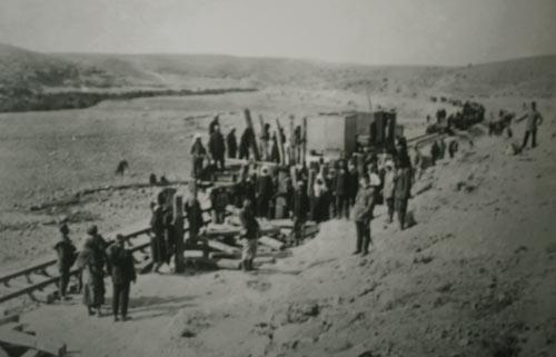 Hamidye Hicaz demiryolunun Hayfa hattının 217. kilometresinde Osmanlı askerleri tarafından döşenmiş raylar - 1900 - 1908