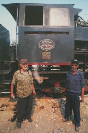 Deraa tren istasyonu. Buharlı tren döneminin iki emketarının tarihi buluşması. Suriyeli makinist Aziz El Kasım (solada) ile trenimizi Amman'a götürecek olan Suriyeli makinist, 1955 yapımı 51 numaralı Alman malı, Jung lokomotifinin önünde...