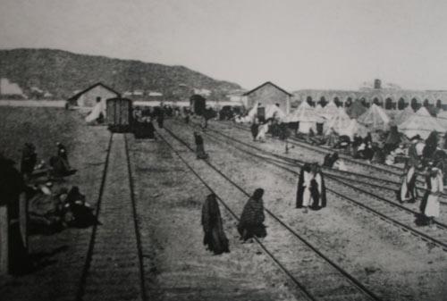 Medine tren istasyonunda bekleyen hacılar - 1909
