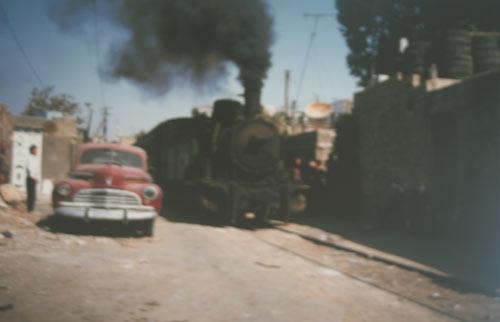 Şam'da şehir içinde kara trenle otomobilin yanyana gelmesi...