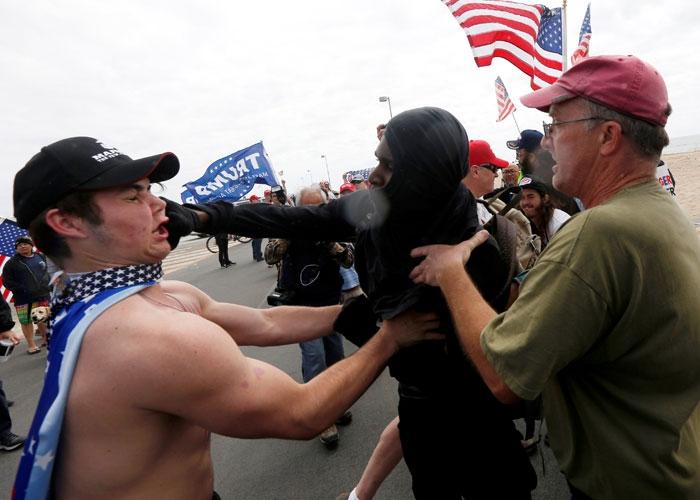 Fotoğraflarda bir destekçinin başka bir adamın yanına gelip adamın kulağına bağırdığı görülüyor.