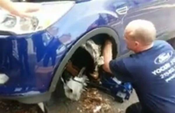 Amerika'da arabasından sesler gelediğini fark eden bir kadın tekerleğinin içinden çıkanlarla şok oldu...