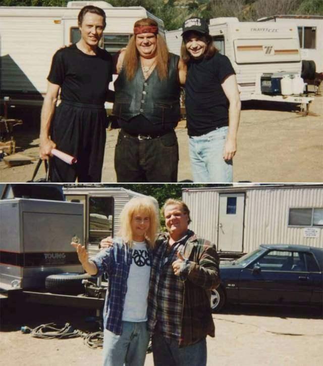 Christopher Walken, Chris Farley, Mike Myers ve Wayne's World setinde Dana Carvey.