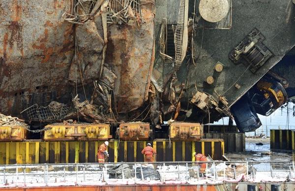 3 yıl önce batan dev gemi kıyıya çıkarıldı