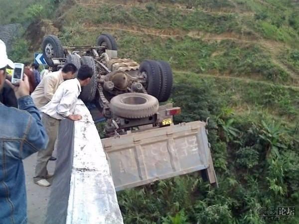 Şoför kurtarma ekiplerinin yardımıyla sağ kurtulmayı başarırken, yoldan geçen biri amatör kamerasıyla bu anı yakaladı.