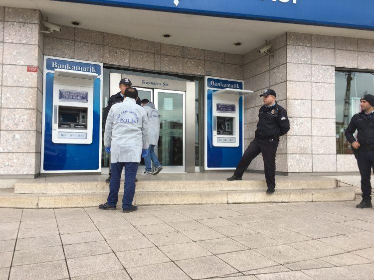 Bu sırada silahlar ateşleniyor. Soyguncu bacağından güvenlik görevlisi ise karnından yaralanıp yere düşüyor.
