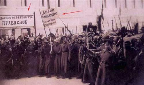 İkinci fotoğrafta tabela Haklarınızı Savaşarak Alırsınız kızıl bayrak da Kahrolun Monarşi yazılı pankartlara dönüştürülmüş.