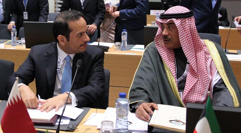 Katar Dışişleri Bakanı Şeyh Muhammed bin Abdulrahman Al Sani (solda), Kuveyt Başbakan Yardımcısı ve Dışişleri Bakanı Şeyh Sabah Halid Al Hamad Al Sabah (sağda)