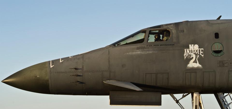Amerikan pilotları yenilenen B1-B Lancer Hayalet Uçağında, Dyess Hava Üssü, Teksas.