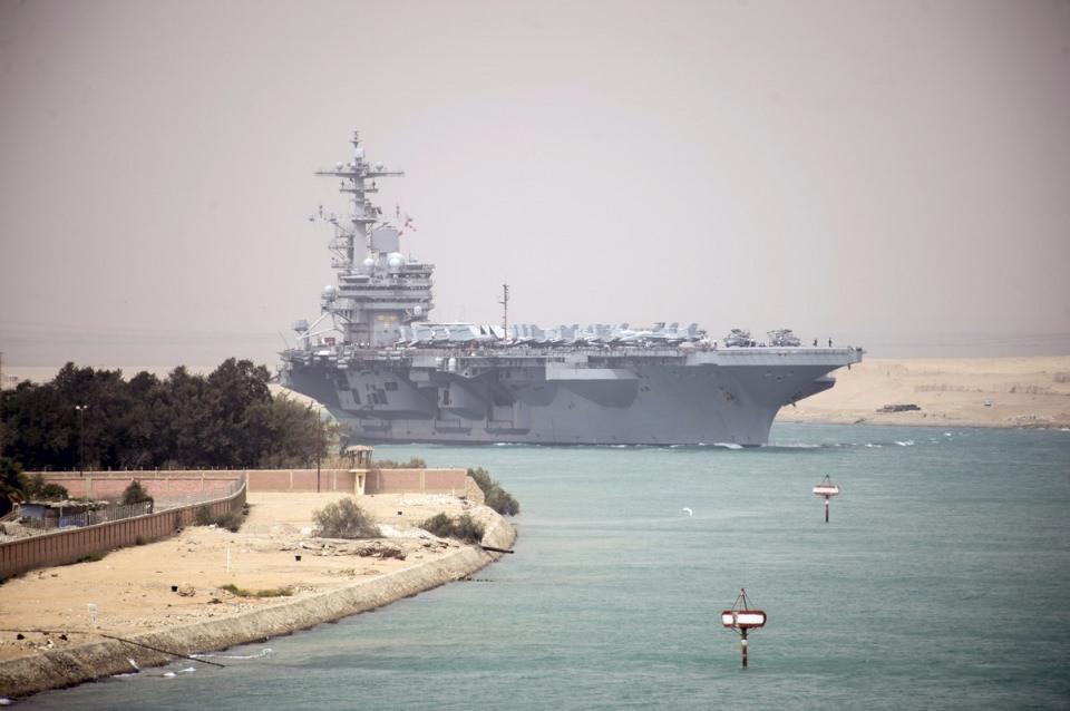 Amerikan askeri gemisi USS George H.W. Bush Süveyş Kanalı'nda.
