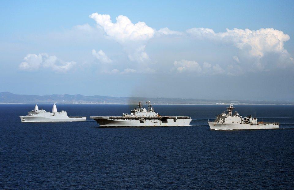 Amerikan askeri gemisi USS Makin Island ve USS Comstock ile USS San Diego Pasifik Okyanusu'nda.