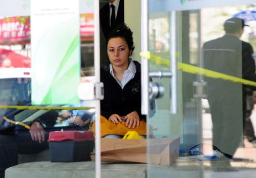 ANTALYA'DA BIR BANKA SUBESINE GIREN KAR MASKELI KISI, HAVAYA ATES ACTIKTAN SONRA SUZI DIKMENOGLU (FOTOGRAFTA) ADLI MUSTERIYI REHIN ALDI. (ANADOLU AJANSI - BEKIR BEKTAS)