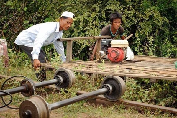 Tek bir hattı kullandıkları için aynı türden başka bir bambu tren geldiğinde kendi trenlerini hemen rayın kenarına alıyor.