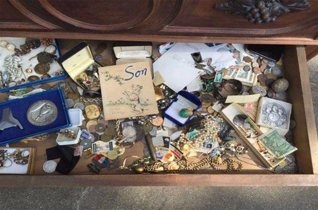 Gizli bölümün içinde mücevherler, elmaslar, antika paralar ve bozukluklar, madalyalar ve dahası vardı. Sanki define sandığı gibiydi.