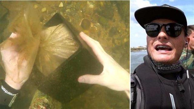 Kutunun içinde bulunan poşeti çıkaran dalgıçlar hayatlarının şokunu yaşadı.