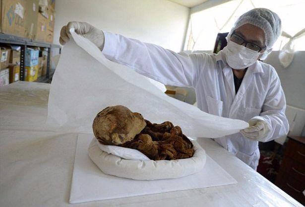 Peru'da eski dönemlere ait bir yerleşim yerinde bulunan mumyalanmış bebek cesedi, ülkede gündem oldu...