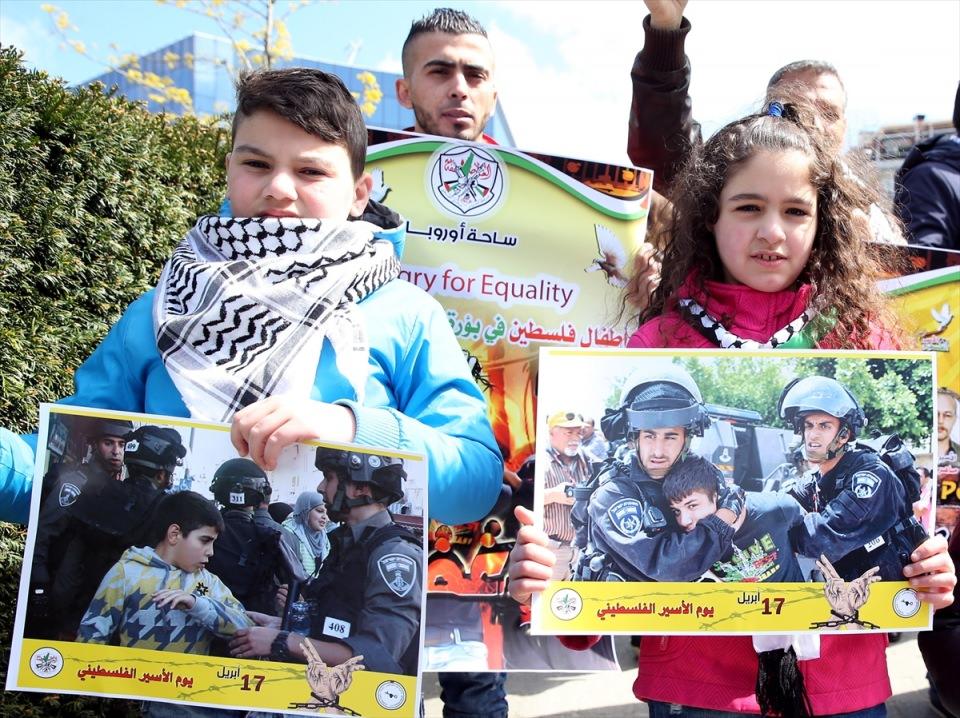 Belçika'nın başkenti Brüksel'de AB kurumlarının bulunduğu Schuman meydanında toplanan yaklaşık 100 kişilik grup, İsrail'i protesto etti.