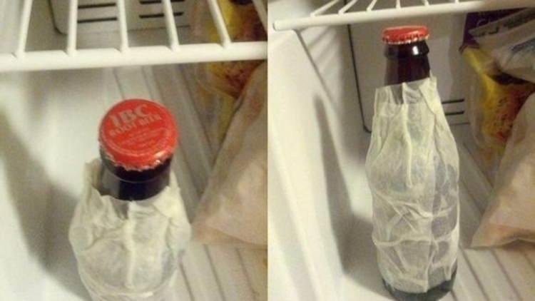 Buzdolabındaki bir içeceği kısa sürede soğutmak ve buz gibi yapmak için bir ıslak mendile sarmanız yeterli.