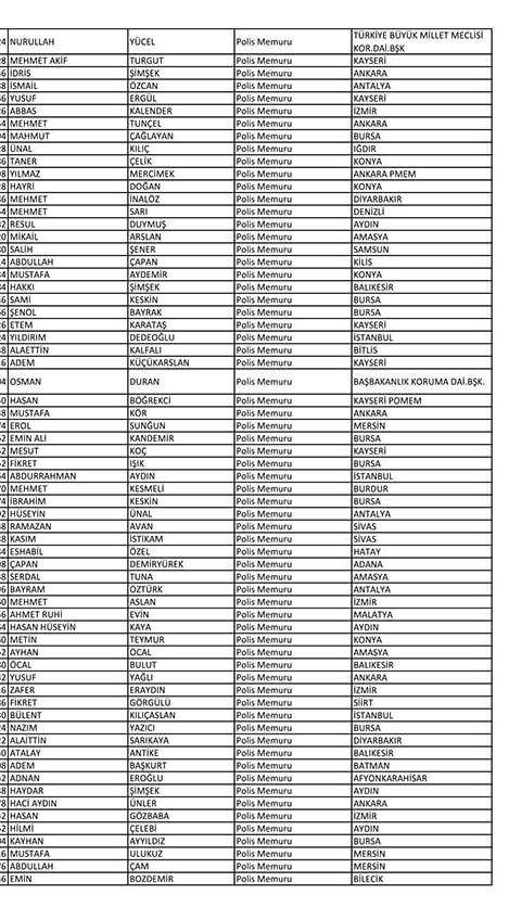 Emniyet'te açığa alınan personelin tam listesi