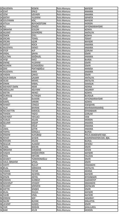 Emniyet'te açığa alınan personelin tam listesi
