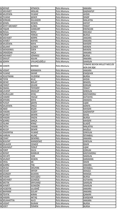 Emniyet'te açığa alınan personelin tam listesi