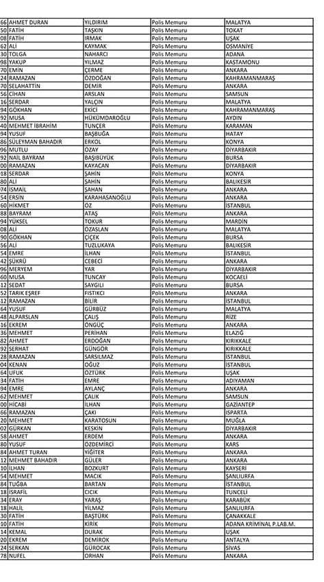 Emniyet'te açığa alınan personelin tam listesi