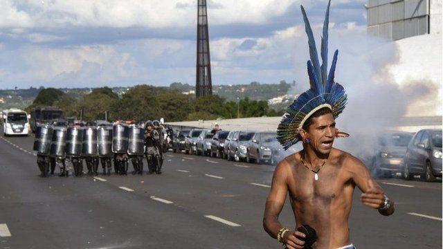 Kabile üyeleri eylem sırasında, çiftçiler ile toprak yüzünden çıkan çatışmalarda yaşamını yitiren yerlileri simgeleyen tabutlar da taşıdı.