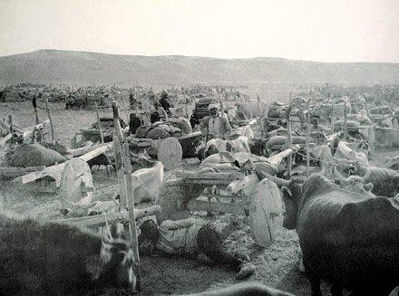 Yorgun ve bitkin olduğu halde memleketini işgale kalkan düşmanı sürüp atan Kuvayi Milliye güçleri. Kağnılarla cepheye erzak, silah ve mühimmat taşıyor. 1922