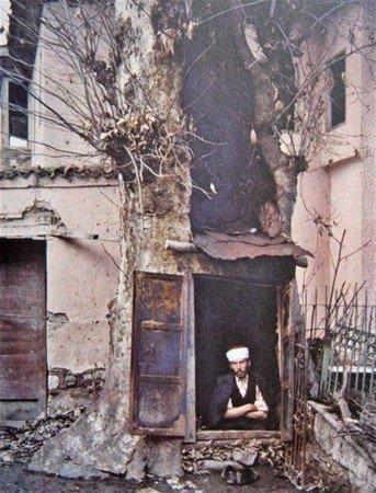 1923 yılında yeni evinin kapısını ağacın içinden yapan Türk vatandaş (Ala Şehir / Türkiye)