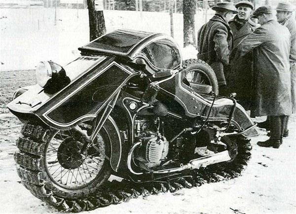 1936 yılında park edilmiş kar aracı BMW Schneekrad.