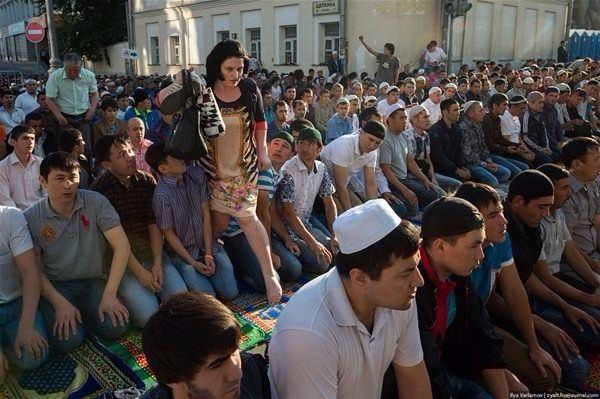 Varlamov'un bu fotoğrafı Facebook'ta büyük bir tartışmaya da yol açtı. Kimi, namaz kılanlar arasından geçmeye çalışan kadını, kimi sokakta namaz kılanları eleştirdi.