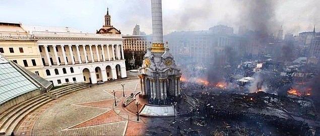 Krayna isyanından önce ve sonra Kiev Özgürlük Meydanı (2014)