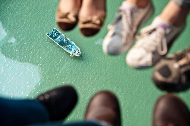 Hong Kong'un Lantau Adası'nda limandan başlayan ve ormanlık dağdaki Tian Tan Buda Heykeli'nin yanına ulaşan 5,7 kilometrelik teleferik hattındaki kabinlerin tabanları camla kaplı.