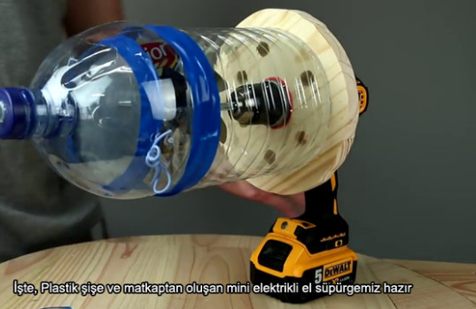 Matkap ve plastik şişeden elektrikli süpürge yaptı