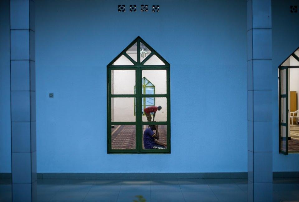 Fotoğrafta başkent Kigali'nin en büyük merkez camilerinden Kacyiru bölgesindeki El Kudsi Camisi'nde ibadet eden Müslümanlar görülüyor.