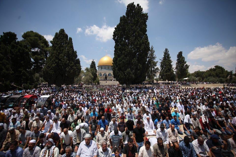 İsrail'in engellemelerine rağmen binlerce Filistinli, ramazan ayının ilk cuma namazını Mescid-i Aksa'da kıldı.
