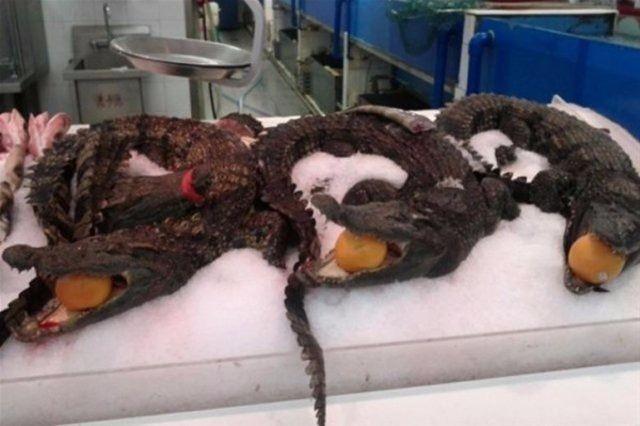 Süpermarketlerde satılan timsahlar.