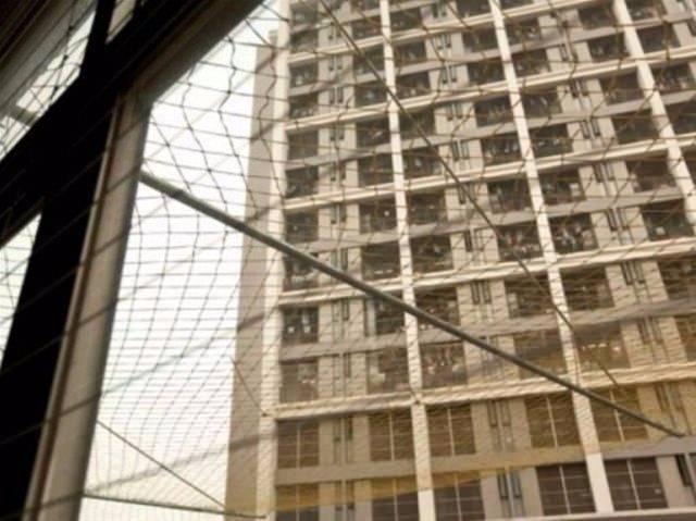 İnsanların intihar etmelerini önlemek için yüksek binaların arasına gerilmiş ağlar.