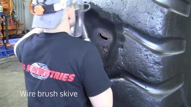 Dev lastiği böyle tamir etti