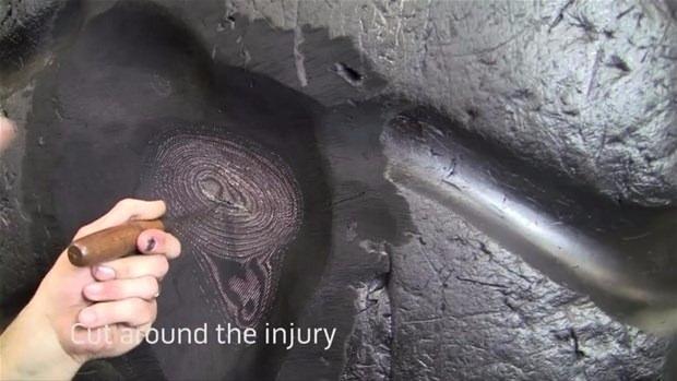 Dev lastiği böyle tamir etti