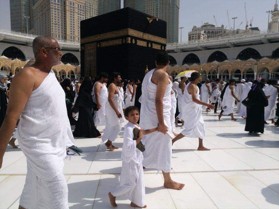 Dünyanın çeşitli yerlerinden kutsal topraklara Umre için gelen müslümanlar, Kabe'yi dualar eşliğinde tavaf ediyor.