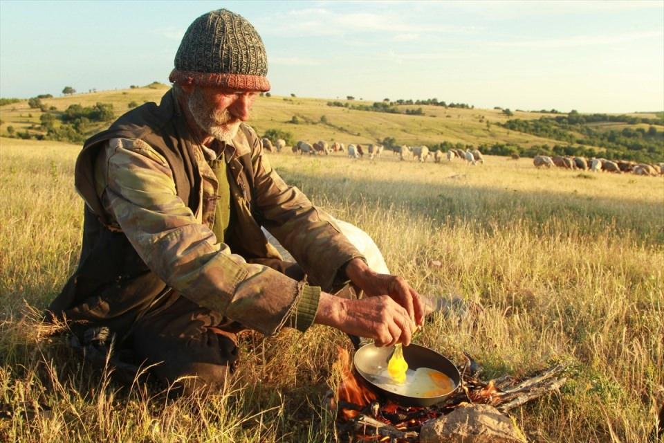 Maldır, taşları çatarak yaptığı ocakta pişirdiği yemeğini, radyosundan duyduğu akşam ezanı sonrası orucunu açarak yemeye başlıyor.