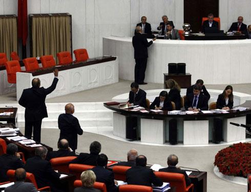 TBMM GENEL KURULU, ANAYASA DEGISIKLIGI TEKLIFINI GORUSMEK UZERE TBMM BASKANI MEHMET ALI SAHIN BASKANLIGINDA TOPLANDI. GENEL KURUL, CHP'NIN ''USUL'' TARTISMASI TALEBIYLE ACILDI. MHP GRUP BASKANVEKILI OKTAY VURAL ILE BASKAN SAHIN ARASINDA SOZ ALMAYA ILISKIN USUL TARTISMASI CIKTI.(ANADOLU AJANSI - HAKAN GOKTEPE)