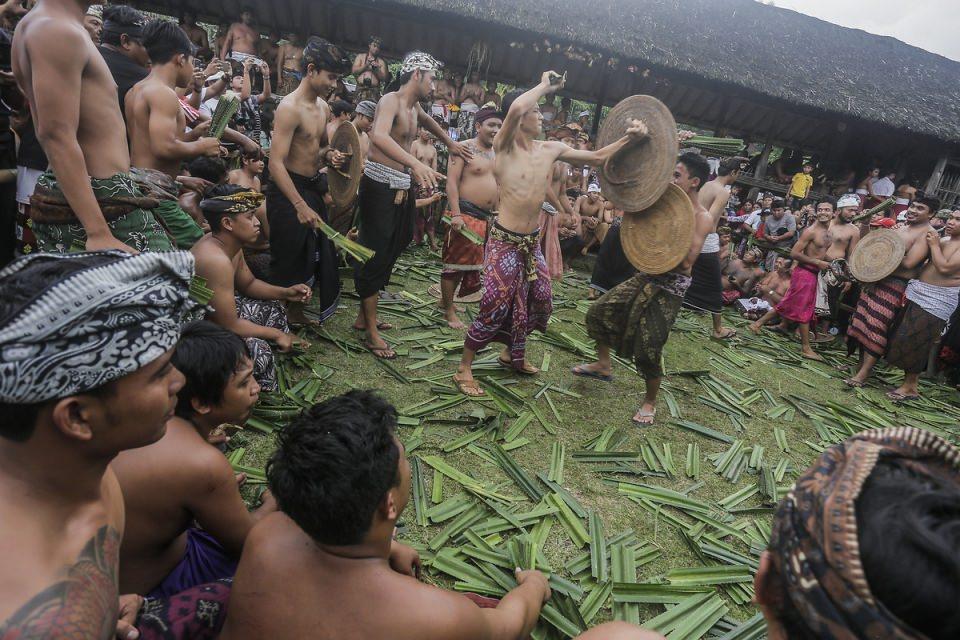 Endonezya Bali'de her yıl yapılan dikenli yaprak savaşı, Pandanus ağaçlarının dikenli yapraklarıyla yapılan kutsal bir dövüş.