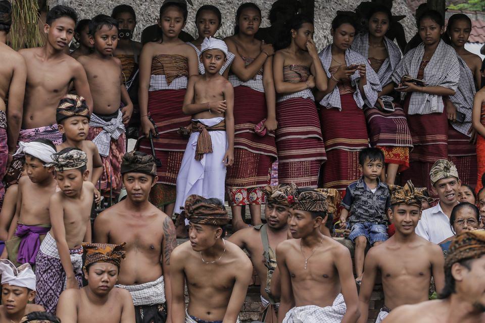 İki kişinin birbirlerine ağaçtan kestikleri dikenli yapraklarla saldırdıkları savaş oyununda her kişinin elinde bir de kalkan benzeri koruyucu bulunuyor.
