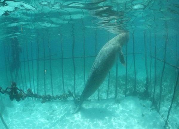 Dişinin yüzgecinin etrafına zincir bağlamış ve kafese sabitlemişti. Erkek ise serbest olmasına rağmen dişisini orada bırakmamak için kafesin dışında yüzüyordu. Olayı araştıran dalgıçlar korkunç gerçekle karşılaştı.